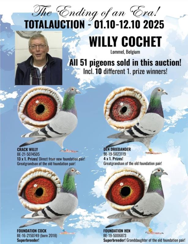 Em parceria com os amigos Moacir & Thiago (Brasil), foram adquiridos dois craques e uma fêmea das suas melhores linhagens, na Venda total de Willy Cochet (Bélgica), Campeão de Velocidade e Geral em 2025, um dos melhores columbófilos da zona onde competiu.