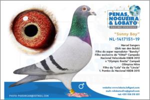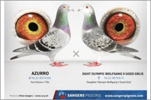 Marcel Sangers (Dirk van den Bulck x Lambrechts) Filho do super reprodutor "Bansky" Filho exclusivo de "Kittel“ Campeão Nacional Velocidade KBDB 2013 x "Olympic Rosita" Campeã Olímpica Nitra Filho da “Lola” tia da "Lincia" 1. Pombo Ás Nacional KBDB (2015