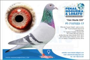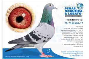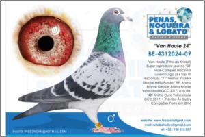 Van Haute (De Raw-Sablon x F. Willy) Consanguíneo do famoso "Limoges" de Marcel Aalbrecth 2. Pombo Ás Nacional Sobrinho do "722/2013" 20 x 1. Prémios em: 8 x 1. Prémios 2014 6 x 1. Prémios 2015 6 x 1. Prémios 2016