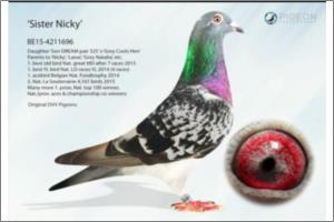 Nouwen-Paesen Filho do "Zwarte Jo" de 1998, o qual ganhou nos Internacionais de Barcelona: 69. -13.161 p., 79-.11.806 p., 387.- 13.021 p. 2. Melhor Pombo nos Internacionais de Barcelona 2001 a 2003.