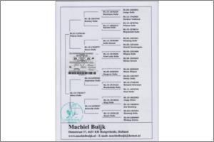 Filha de “Sister Golden Leonie 708” Irmã de “Golden Leonie” 1. Nacional Libourne 6.309 p. Neta de “Golden Prince” 1. Pombo Ás Nacional Fundo KBDB 3. Nacional Brive 3.850 p. Neta de “Magda” 9. Pombo Ás Nacional KBDB Meio-Fundo