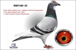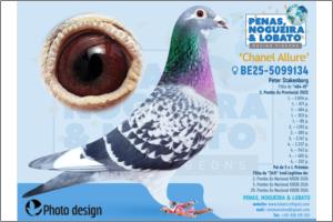 Filha da “485-19” irmã de ninho do "484-19" 3. Pombo Ás Provincial 2022 1. – 2.604 p. 1. – 871 p. 1. – 484 p. 1. – 303 p. 1. – 181 p. 2. – 1.193 p. 2. – 289 p. 3. – 2.147 p. 4. – 2.237 p. 4. – 543 p. 4. – 460 p. 4. – 332 p. Pai de 5 x 1. Prémios