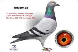 Peter Stakenborg Filha do "359-23" 29. Pombo Ás Nacional KBDB 2024 1. Chimay 903 p. 1. Chimay 121 p. 1. Mettet 119 p. 5. Chimay 1.178 p. 5. Laon 526 p. 6. Laon 761 p. 7. Mettet 685 p. 15. Chimay 1.595 p. 28. Chimay 2.684 p. Irmão de ninho do 2. Pombo Ás Nacional KBDB 2024