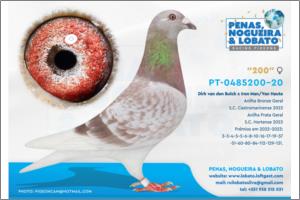 "The Provincial" 1. Distrital Sabugal (221 km) 14.481 p. Cedido em 2019 para a China. Irmão legitimo da Crack 40” 1-1-3-4-5- 6-7-7-10-14-14-26-26-etc. Anilhas Ouro Geral e Meio-Fundo, "39" Anilha Ouro Velocidade e Anilha Bronze Geral,