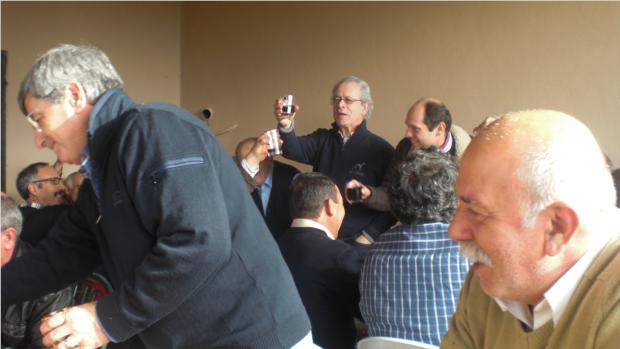 O César fazendo um brinde ao bom convivio de amigos, mais uma vez unidos pela Columbofilia (Saudável).