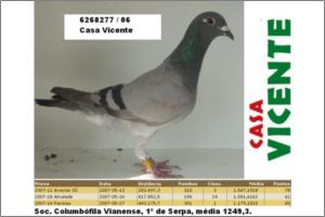 "CASA VICENTE" Soc. Columbófila Areosense 2007 Anilha Prata Meio Fundo 2005 Anilha Prata Borrachos