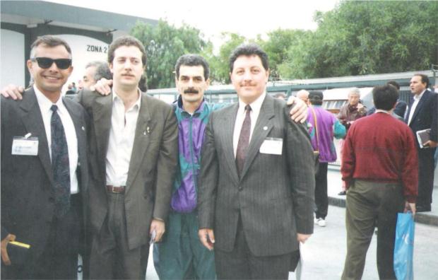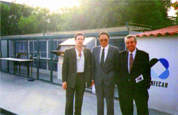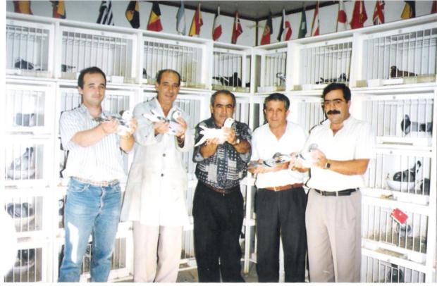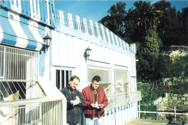 Ulisses Zacarias Terra esperando pelos pombos referentes ao campeonato mundial realizado nas Canárias - 1993. Prova de Tan Tan (Marrocos) cerca de 570 km sobre o mar até às Canárias. A esperança era muita, pois em 1992 um dos meus "Ayrtons" chegou com vinte minutos de adianto a todos os pombos Ibéricos, sendo o único pombo Português dos 50 pombos Portugueses participantes na prova. Nesta, apenas 7 pombos Ibéricos chegaram na final. E para mais esperança, na prova anterior à final do campeonato mundial 1993, outro "Ayrton" : 2365467/92 Azul Asas brancas chegou em primeiro ligar mundial com 31 minutos de avanço a todos os pombos do mundo. Foi pena na final mundial só ter aparecido um pombo três dias depois (veio pousado em algum barco)... Ulisses Zacarias Terra com os seus amigos Peruanos e Juliano - Italiano.