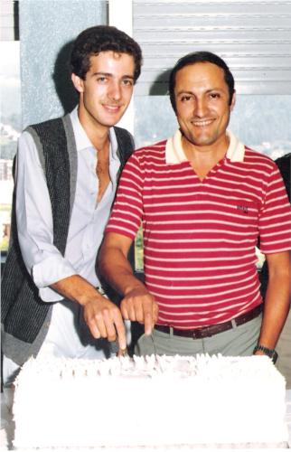 Ulisses e Penélope Terra partindo o bolo de campeão distrtital de fundo 2002 contra 4000 columbófilos.