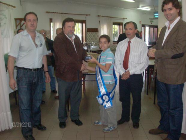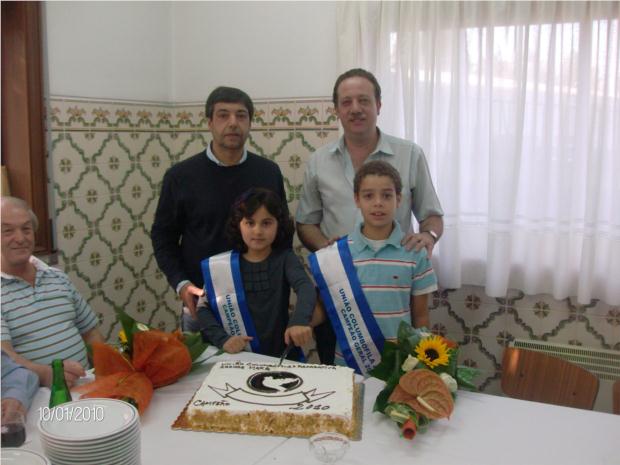 Distribuição de prémios: S.Columbófila da Porto 2010 e Marco Paulo G.Costa - Campeão de fundo de 2009. Grupo de directores na foto cojunta com os campeões.