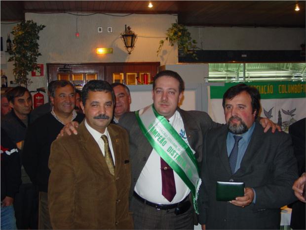 Campeão do distrito do Porto 2002 contra 4000 columbófilos ladeado por Dr. José Tereso e Dr. Nogueira.