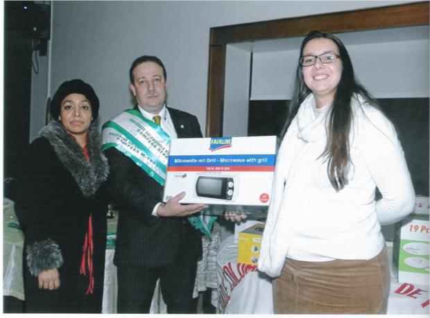 Dr. Nogueira dos Santos - veriador da câmara da Maia entregando a faixa e taça de campeão geral da união columbófila da Areosa - 2010.