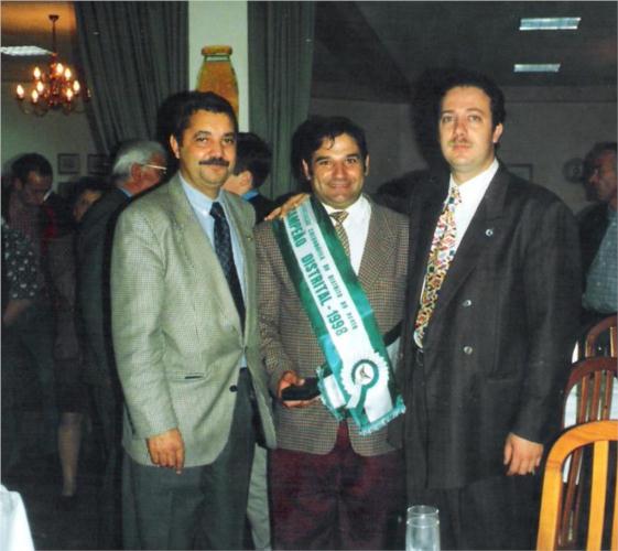 Dr. José Tereso, Sr. Ângelo de Água Longa - Grande campeão de fundo de 1998 do distrito do Porto e Ulisses Terra. De salientar que uma fêmea minha foi responsável por 50% deste título. Parabéns campeão!