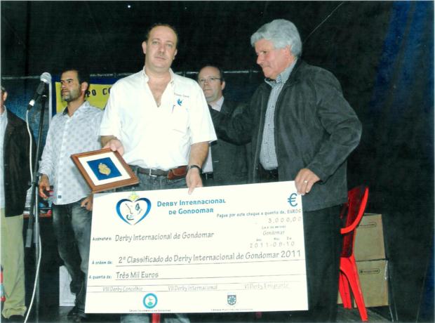Em representação do vencedor do 2º prémio - Jorge Almeida Santos no Derby internacional Gondomar 2011. Já se começam a tornar usuais as suas conquistas em Gondomar , tendo em 2010 subido ao pódio em sua representação pela conquista do 1º prémio internacional - Gondomar 2010. Parabéns Campeão!