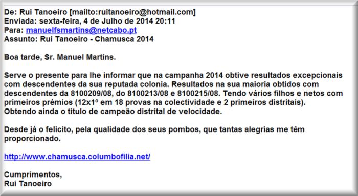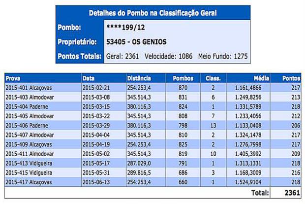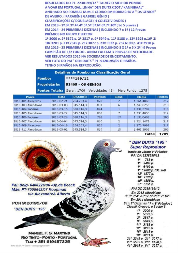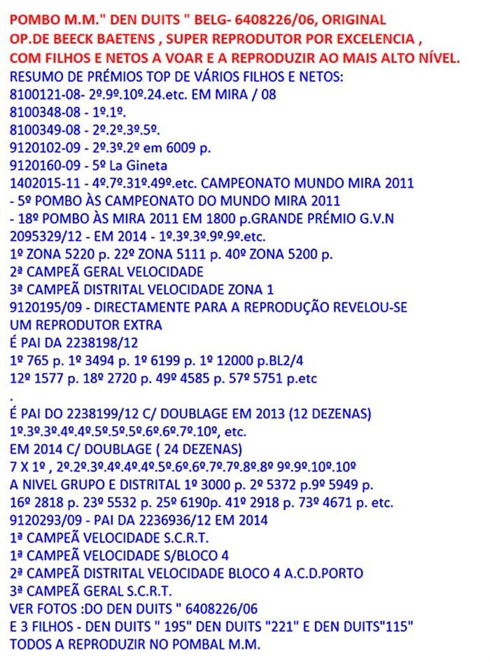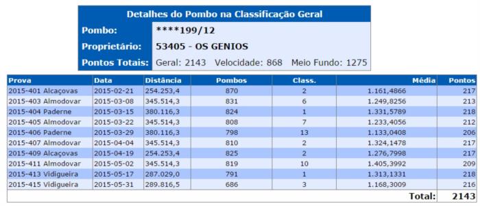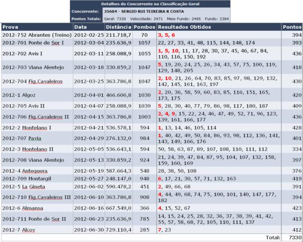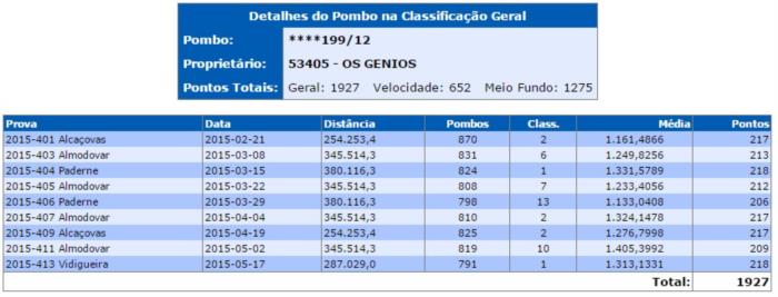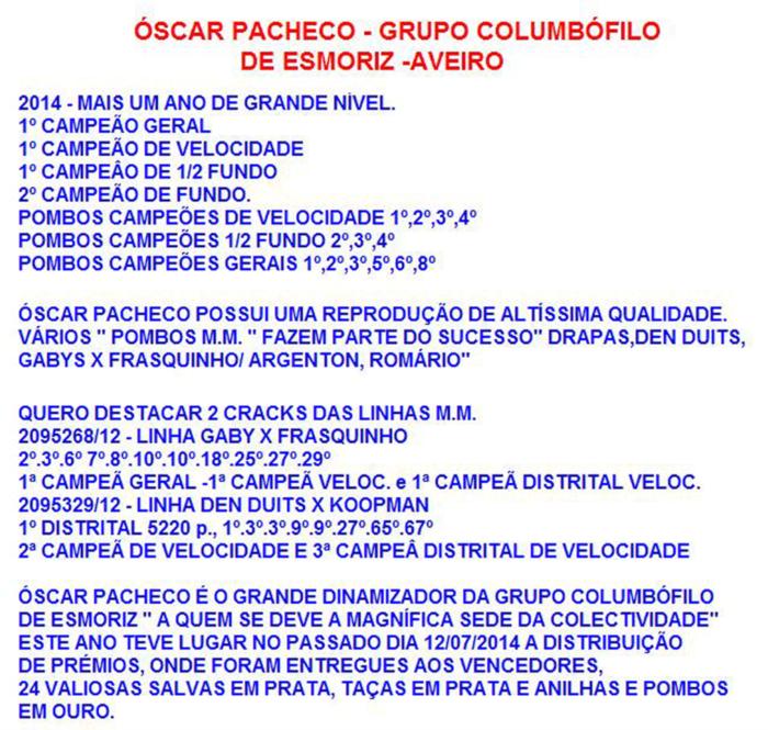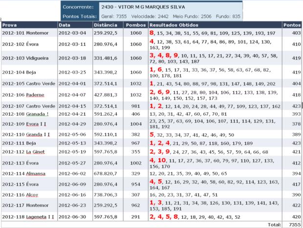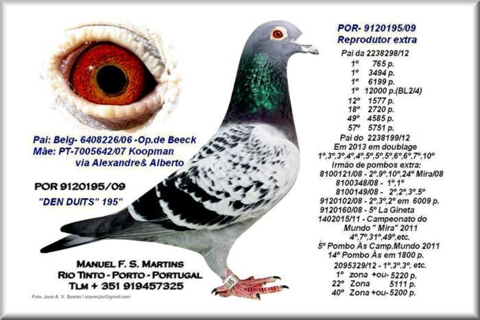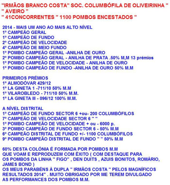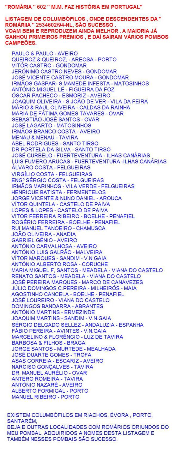 Nota: 90% desta colónia é composta e reforçada todos os anos com pombos M.Martins.