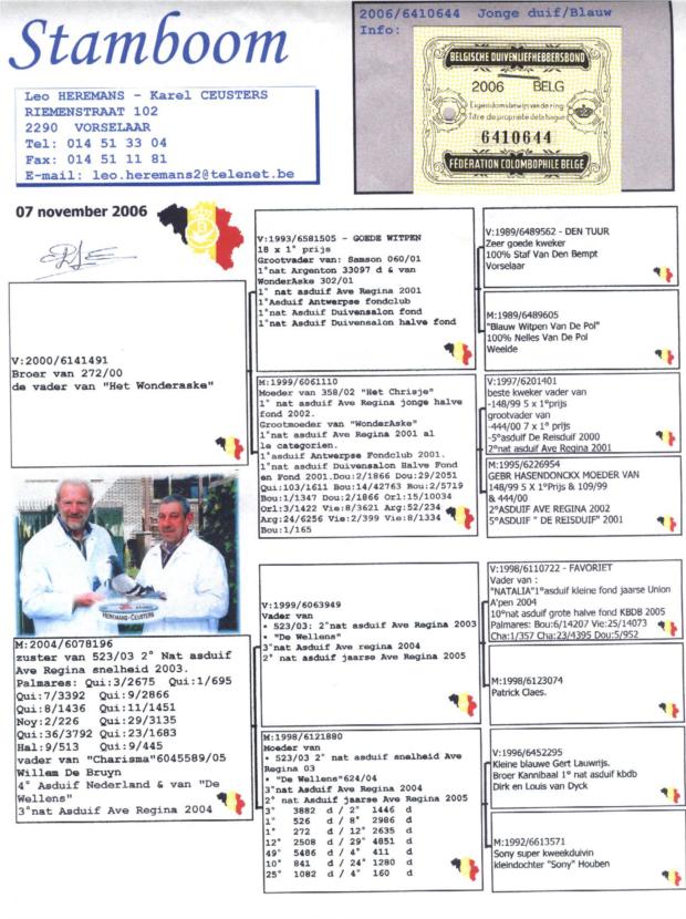 Pais : Romário 492/07 x 401059/10 ( Heremans –Ceusters)