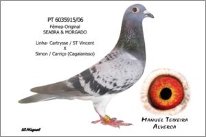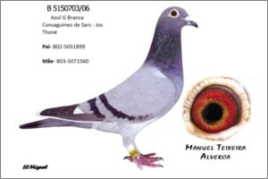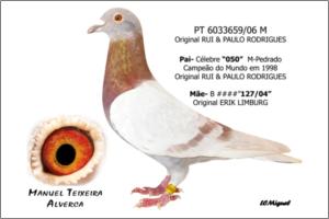 Nota: Irmã da melhor fêmea de grande fundo de 2005 do distrito de Lisboa e 5º melhor pombo nacional de 2005