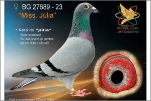 * Filha do Super casal 633 x 945 * Irmã de vários 1ºs prémios da Zona 1 (ACDP) * Irmã de vários cracks a voar e a reproduzir * Tia do "Ruby" - 7 x 1st e 1st World Best Pigeon Short distance 2023 --- Avó de, entre outros: * 1. Casatejada I - 17/02/2024 - 313 p.e * 3. Ubeda - 26/05/2024 - 506 p.e * 10. Malpartida Caceres I - 23/02/2025 - 210 Kms - 504 p.e * 4. Malpartida Caceres II - 02/03/2025 - 210 Kms - 470 p.e * 10.Talavera de La Reina - 16/03/2025 - 304 Kms - 380 p.e * 10.Torralba de Calatrava - 16/03/2025 - 378 Kms - 659 p.e * 2. Almeirim - 30/03/2025 - 221 Kms - 553 p.e * 3. Almeirim - 30/03/2025 - 221 Kms - ACDPorto - Z4 - 4.724 p,e * 1. Talavera de la Reina II - 13/04/2025 - 304 kms - 378 p.e * 2. Talavera de la Reina II - 13/04/2025 - 304 Kms - ACDAveiro - Z4 - 5.428 p,e * 2. Talavera de La Reina III - 11/05/2025 - 304 Kms - 349 p.e * 11. Talavera de la Reina III - 11/05/2025 - 304 Kms - ACDAveiro - Z4 - 5.358 p,e * 1. S.M.Sado - 25/05/2025 - 340 Kms - 514 p.e * 3. S.M.Sado - 25/05/2025 - 340 Kms - ACDPorto - Z4 - 3.665 p,e * 5. Évora - 25/05/2025 - 284 Kms - 233 p.e * 8. Villares Dela Reina II - 07/06/2025 - 238 Kms - 355 p.e * 4. Canha III - 08/06/2025 - 286 Kms - 539 p.e * 10. Canha III - 08/06/2025 - 286 Kms - ACDPorto - Z4 - 3.824 p.e * 6. Alborea III - 14/06/2025 - 585 Kms - 179 p.e