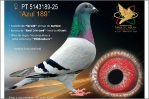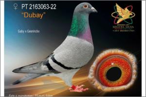 * Dupla Consanguinea da velha linha Gabby " Wittenbuik" * Linha com varias anilhas de Ouro e Prata. * O 4 libras d´Ouro arrasou o distrito e ainda hoje os seus descendentes ganham por esse país fora ---- Mãe de, entre outros: * 5. Almodovar - 13/03/21 - 726 p.e - 367 kms * 4. Montemor - 04/06/22 - 155 p.e - 252 kms * 5. Évora - 11/06/22 - 322 p.e - 278 kms * 4. Paderne - 28/04/24 - 575 p.e - 409 kms * 2. Vilhares de La Reiba II - 18/05/2024 - 273 p.e - 238 Kms * 4. Vendas Novas - 09/06/2024 - 627 p.e - 244 kms * ANILHA DE OURO DE BORRACHOS NA S.C.CUCUJÃES 2024 * 5. Malpartida Caceres II - 02/03/2025 - 470 p.e - 210 Kms * 5. Aldeia dos Fernandes - 23/03/2025 - 386 p.e - 368 Kms * 5. Loulé - 27/04/2025 - 422 Kms - 333 p.e * 1. Mostoles - 11/025/2025 - 343 Kms - 273 p.e * 2. Viana do Alentejo - 07/06/2025 - 285 Kms - 391 p.e * 3. Évora - 22/06/2025 - 274 Kms - 338 p.e * CAMPEÃO GERAL DA S.C.CUCUJÃES 2025 * VICE CAMPEÃO DE MEIO FUNDO DA S.C.CUCUJÃES 2025 * 3. CAMPEAO DE VELOCIDADE DA S.C.CUCUJÃES 2025 * 5. CLASS. ZONA 3 - SECTOR 5 - GRUPO J - VELOCIDADE ACDA 2025