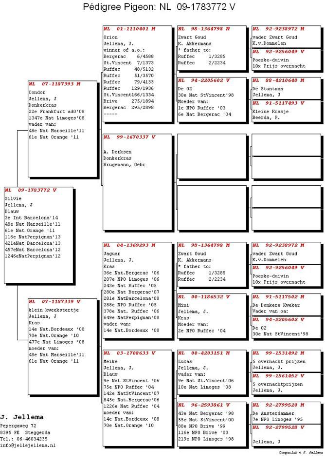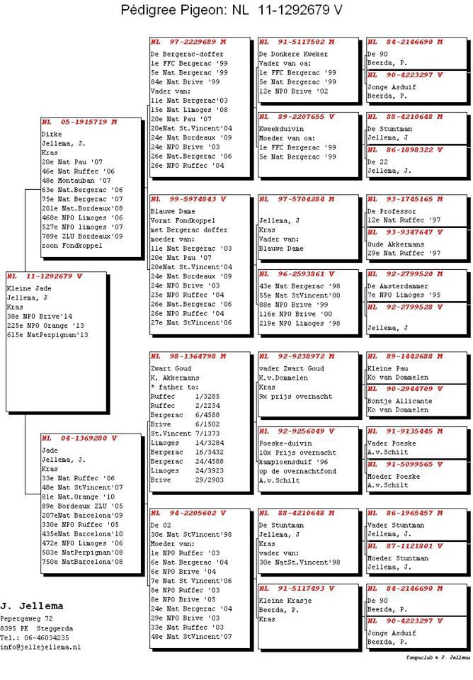 Hoy en día practican la consanguinida o endogamia y alguna vez introducen alguna paloma nueva. En algunos de sus pedegries podemos observar palomas de Ko Van dommen y Hnos. Bruggeman.