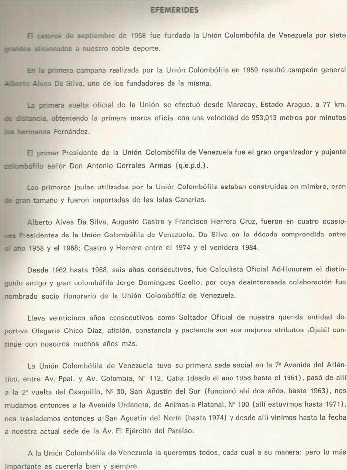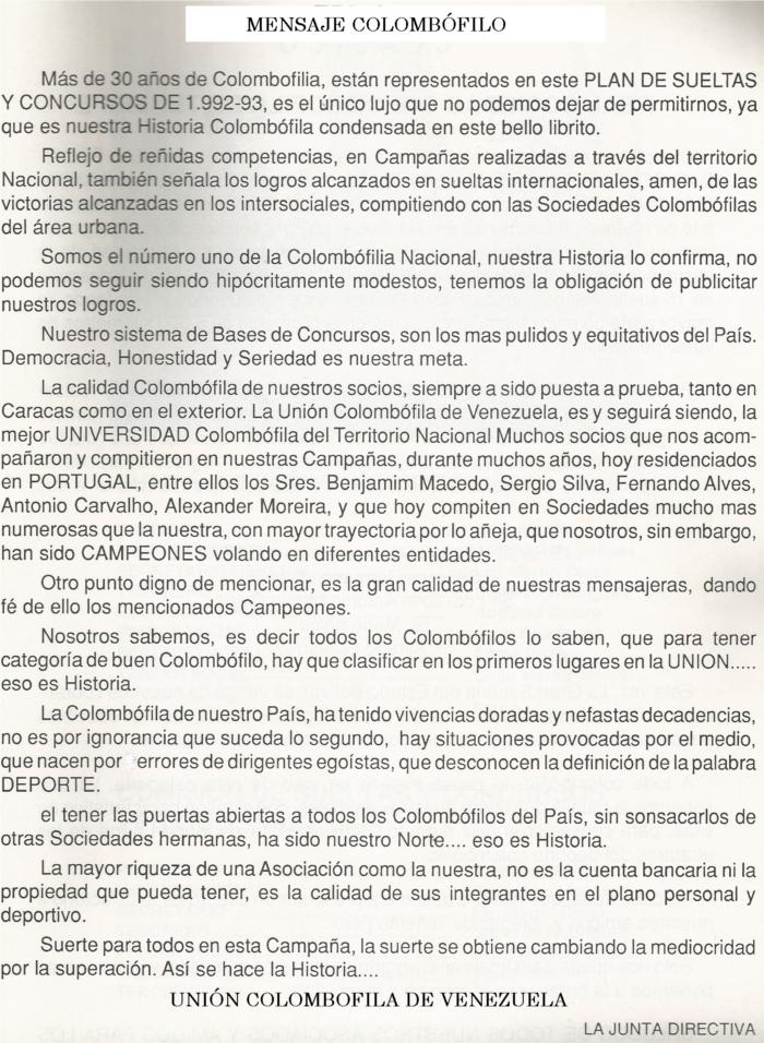 SIGAMOS CON ALGO DE HISTORIA SOBRE LA SOCIEDAD COLOMBOFILA DE VENEZUELA