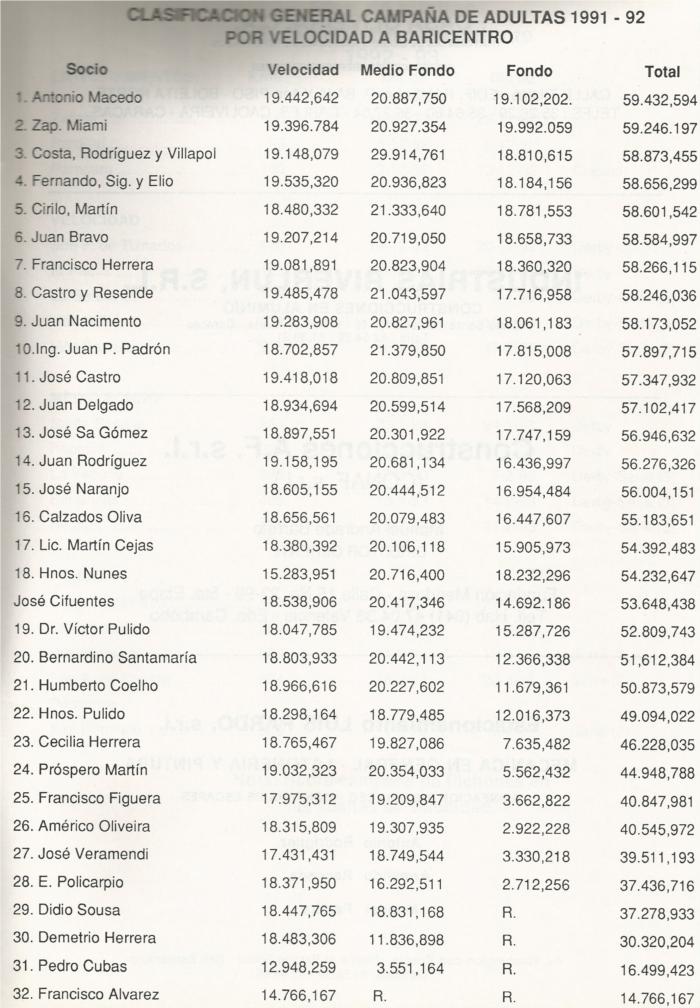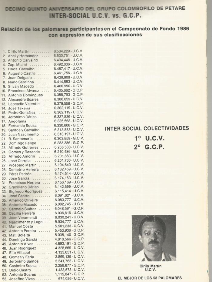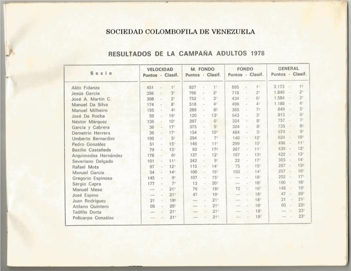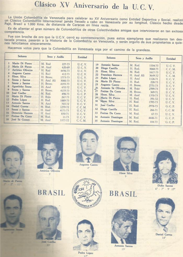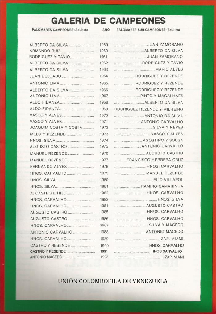 Augusto Castro e hijo y Hermanos Carvalho (Joaquin y Antonio) marcaron la diferencia entre todos los colombofilos de Venezuela llegaron a ser imbatibles, años tras años se disputaban el 1º y 2º en el campeonato, los demás se limitaban a buscar el 3º lugar.