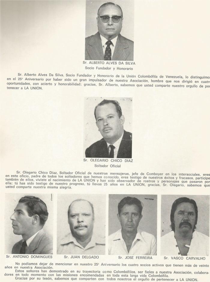 ALGUNOS DIRECTIVOS DE LA SOCIEDAD COLOMBOFILA DE VENEZUELA