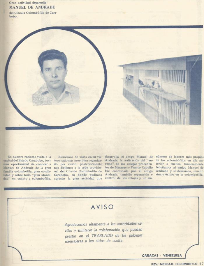 OTRO DE LOS COLOMBOFILOS ÉLITE DE LA COLOMBOFILIA DE VENEZUELA. SUS PALOMAS ERAN EXCLUSIVAS.