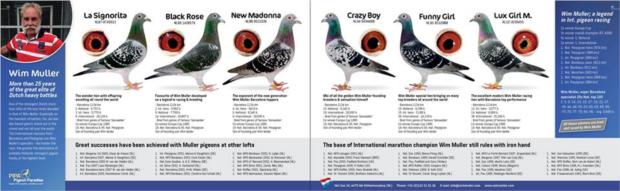 A principios de los años ochenta, los lofts de Muller eran supremos en un contexto nacional con grandes palomas como Hércules, Willem y Adonis, entre otros, siendo el momento culminante de esa década el ganador de la Europa Cup en 1985. El año anterior, el famoso ' Magic Boy había ganado el título de 1st Ace Pigeon en carreras de Barcelona, Marsella y Perpignan; también el último pájaro para el período 1993-1997 fue coronado como el mejor pichón europeo en cinco carreras desde Barcelona. Algunas de las posiciones logradas por esta fabulosa paloma fueron las siguientes 44th nat. Barcelona; 73 ° nat. Barcelona; 118th nat. Marsella; 119th nat. Perpignan; 149th nat. Barcelona desde miles de convoyes.