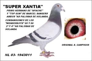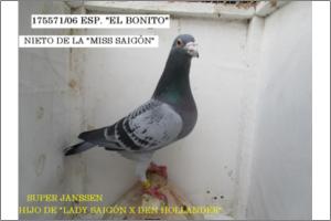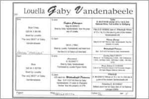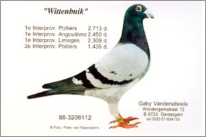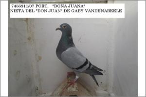 PADRE; NIETO DEL "TURBO" (1/2 HERMANO DE WITTENBUIJK) MADRE; "DOÑA JUANA" NIETA DEL "DON JUAN" (HERMANO COMPLETO DE WITTENBUIJK). NIETOS DE PALOMAS BASES DEL PALOMAR DE GABY VANDENABEELE.