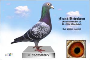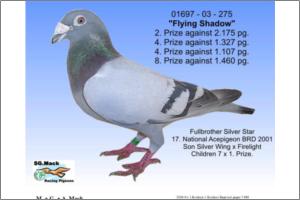 ORIGINAL M + G + A. MACK.( ALEMANIA ). MACHO AZUL. NIETO DE "SILVER SHADOW II " HERMANO DE "SILVER START " 17º " AS PALOMA DE ALEMANIA" SU PADRE ES NL-00-1489207 -V HIJO DE "SILVER SHADOW II ". SU MADRE; ES HERMANA DE "VOLARE" AS PALOMA ALEMANIA 1999 LINEAS VAN LOON. EIJERKAMP.