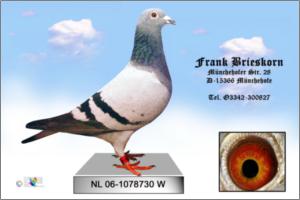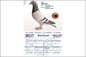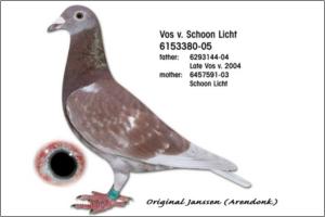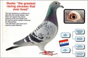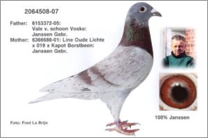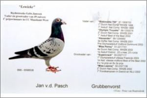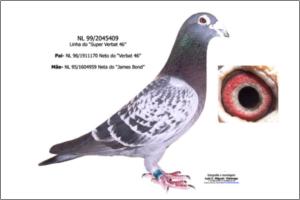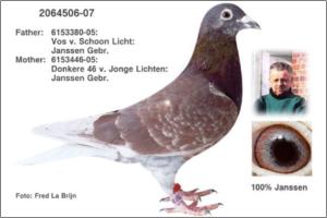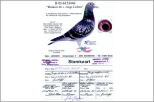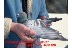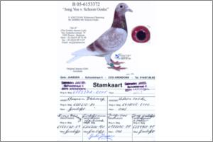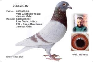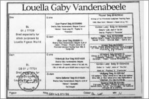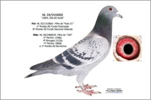 Los Padres de éste macho fueron comprados en huevos por J. FENNEMA directamente del palomar de LOUIS VAN LOON, La Madre es una hija de la pareja Nº 1 de éste gran Colombófilo.