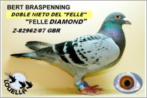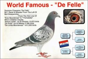 DOLBLE NIETO DEL "FELLE" EL TRIPLE CAMPEÓN DE BERT BRASPENNING. Y NIETO DE LA SUPER" VAN MOORSEL" 20 X 1º , 10 X 2º. ,, 1º AS PALOMA + TRES VECES 2º AS PALOMA DE VELOCIDAD DE TODA HOLANDA. LÍNEAS JANSSEN.