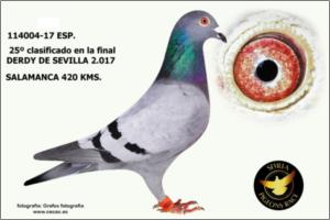 MACHO AZUL. 50% KOOPMAN X 50% GABY. CLASIFICADO EN EL 25º EN LA FINAL DEL DERBY SEVILLA PIGEONS RACE 2.017.