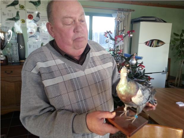Com o seu melhor pombo de todos os tempos embalsemado, o "Kleinen Bliksen"