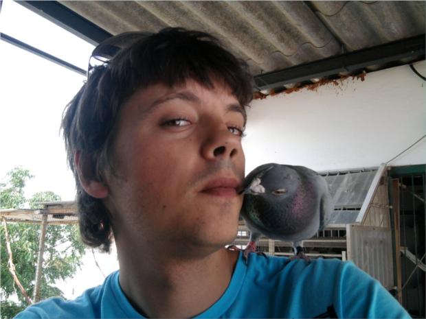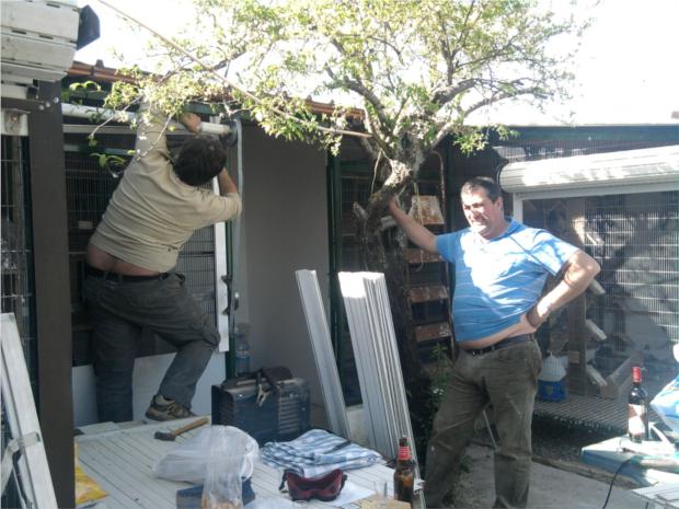 Isabel com o nosso amigo Jose Luis nos ultimos preparativos do nosso pombal de Reprodutores.