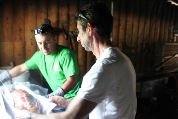 o Duque a cortar a sardinha que eu levei da nossa Bairrada para comermos com o amigo , Pedro Pimentel na sua quinta (Monte da Coelha) o meu muito obrigado pela recepçao que o senhor Pedro teve para connosco . Mario Oliveira (Os Bravos )