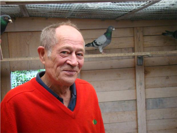 Maurice Vanthournout no interior do seu pombal de reprodutores