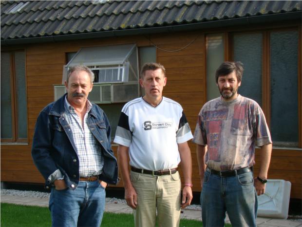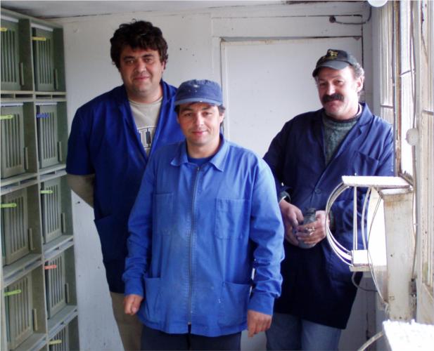 B. Racha, Lemos e Carlos Franco no nosso pombal das Fêmeas.