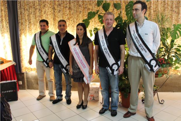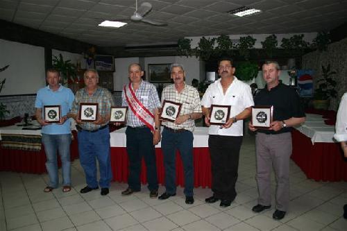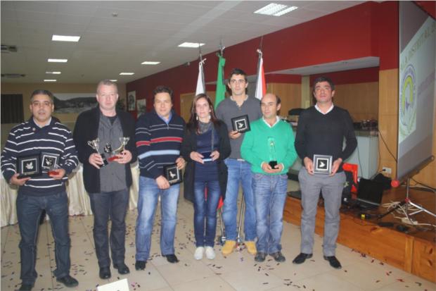 Os Silvas com os ajudantes e o pai de Carlos Silva com os prémios ganhos na Sociedade de Macieira de Sarnes 2009