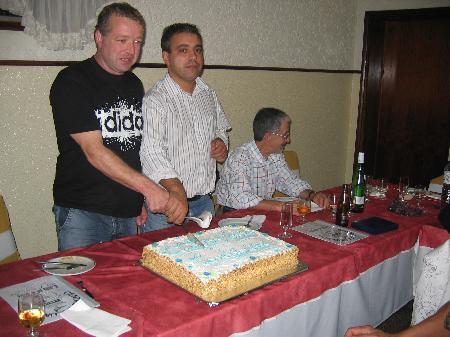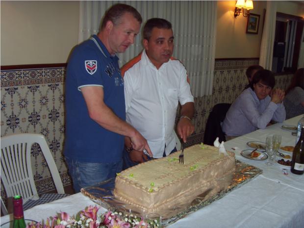 entrega de prémios-2013 C.C.S.JOÃO da MADEIRA " OS SILVAS" campeões de 2012 cortando o bôlo com RUFINO NETO campeão 2013
