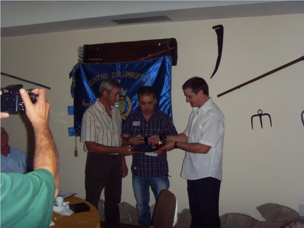 Os Silvas e recebendo os Prémios Entregues pelo SR.Ramalho Presidente da Associação Columbófila do Distrito de Aveiro