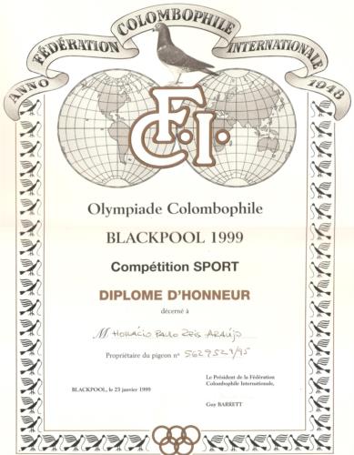 Sempre tive um interesse muito especial pela reprodução, tendo criado Pombos de excelente qualidade. Destaco o "OLIMPICO 529", 4º classificado Fundo OLÍMPIADAS de BLACKPOOL 1999.