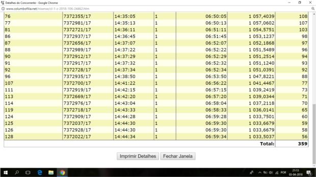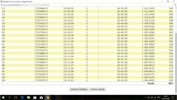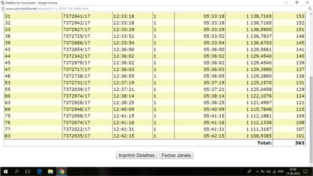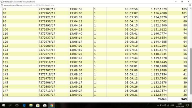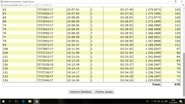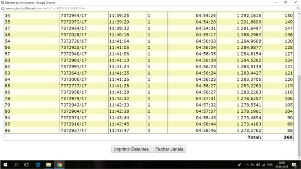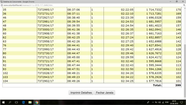 1255994/01, com 20 classificações sendo sete nos dez primeiros e com seis classificações em fundo.