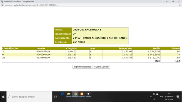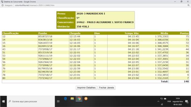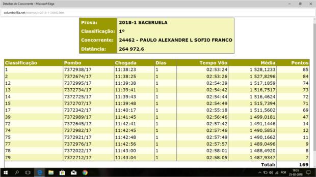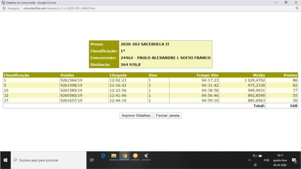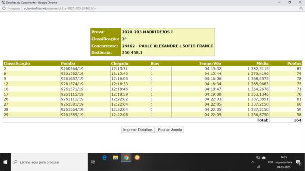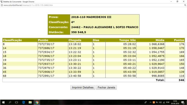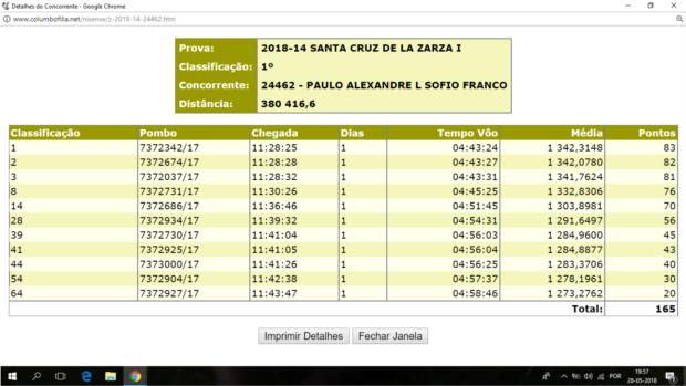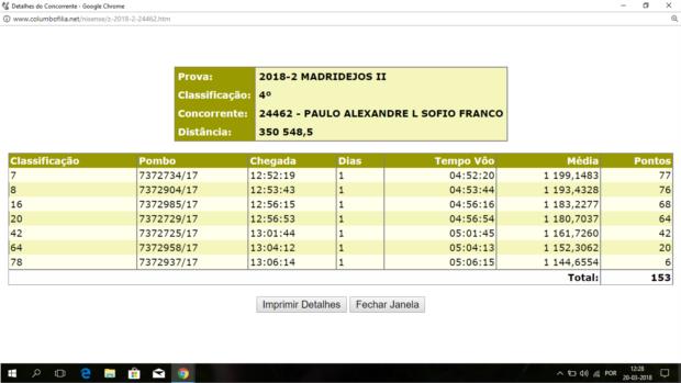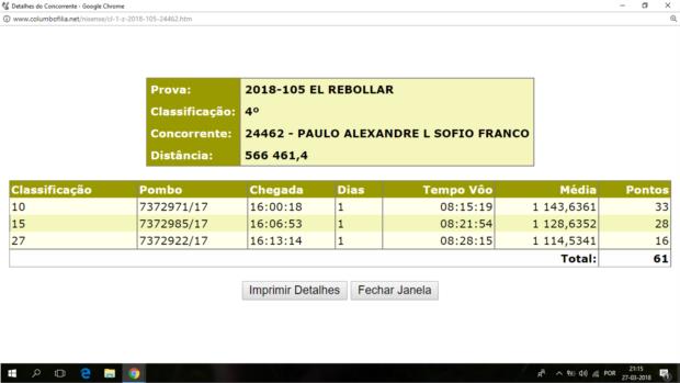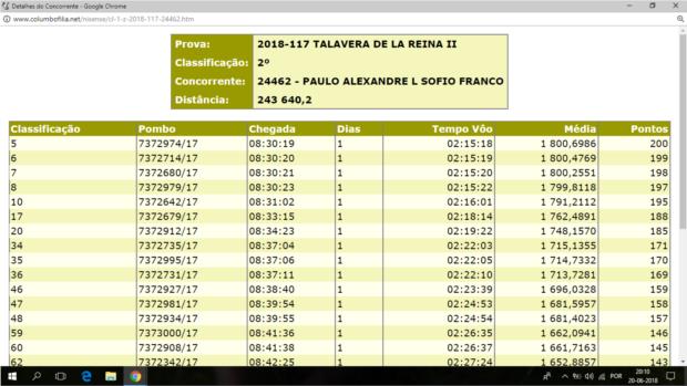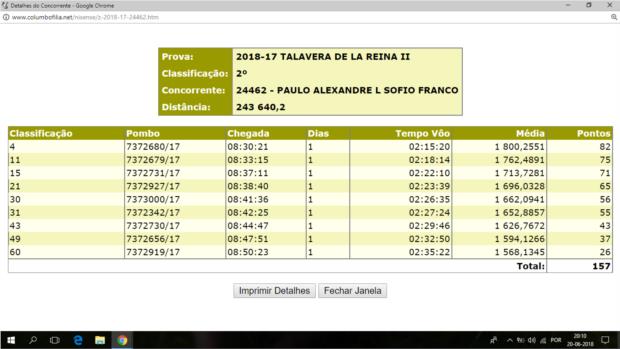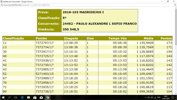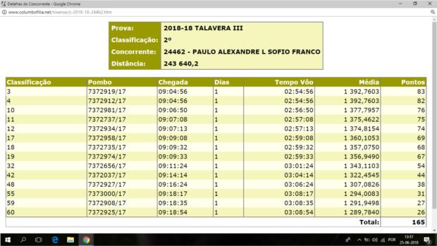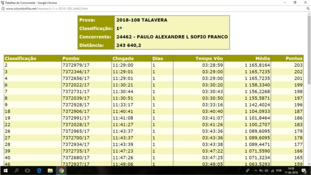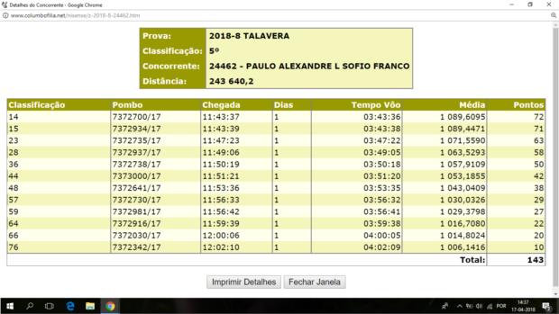 Convêm também lembrar que nesses anos em que o Paulo venceu e convenceu em Arraiolos e, no distrito se houve alguém a tenter lutar contra a maré e que lhe deu alguma "luta " fui eu já em sociedade com o Rui Antas, é certo em velocidade e principalmente meio fundo mas, esta luta era , eu sabia-o ,em termos relativos e reduzidos. ( vidé distritais da zona norte de 2004). Penso que até foi o ano em que o Paulo se lembrou um dia, de fazer duas equipas dizendo apenas aos directores da época para lhe dividirem os pombos por pares e ímpares na terminação e, qualquer dessas equipas ganhou tudo .