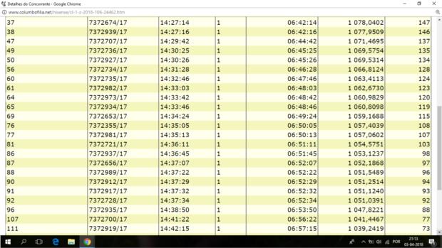 1256014/01, com 21 classificação, com 4 nos dez primeiros e entre elas 3 no fundo.