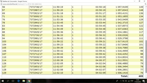1256049/01 fez 23 classificações , com 4 nos dez primeiros e com marcações no fundo.
