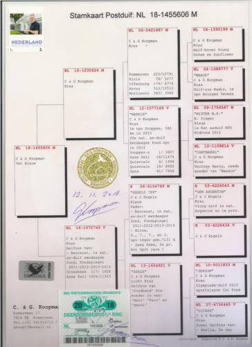 Koopmans Originais um neto da "Lady Promise" bisavó do pombo mais caro do mundo (2.78 milhoes euros) 13/12/2018