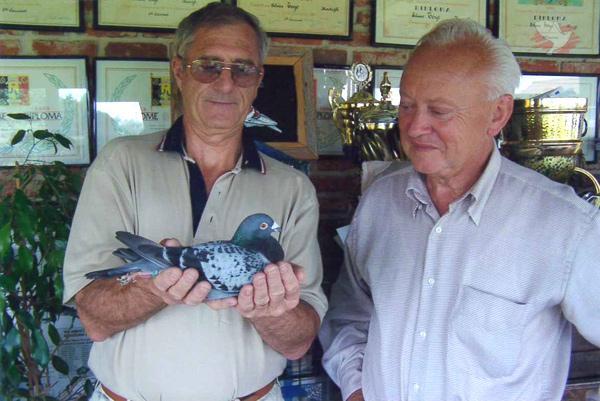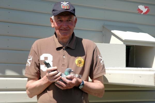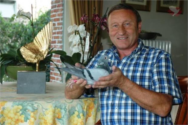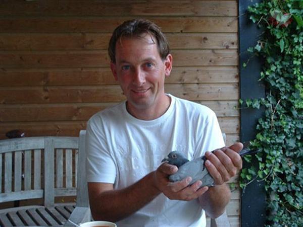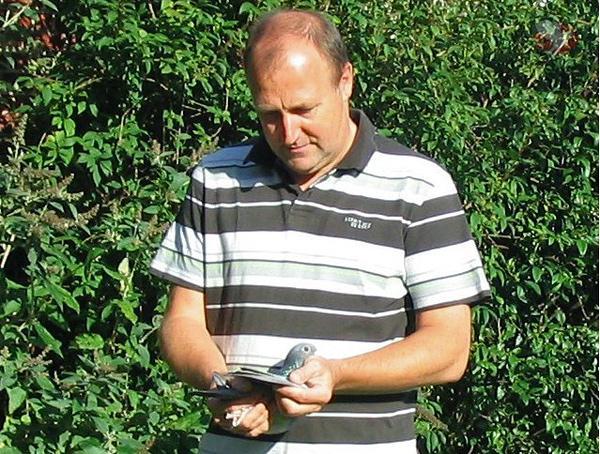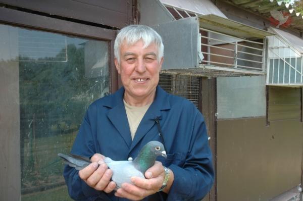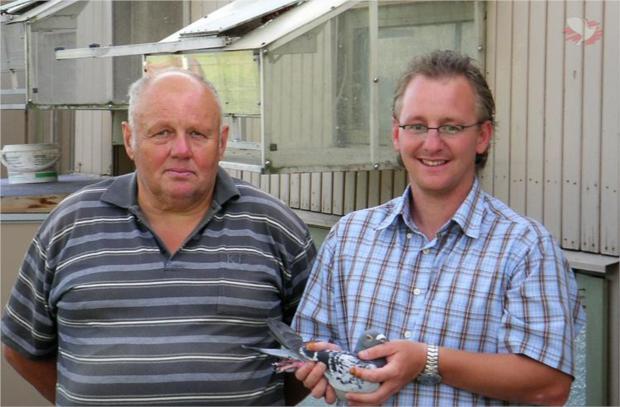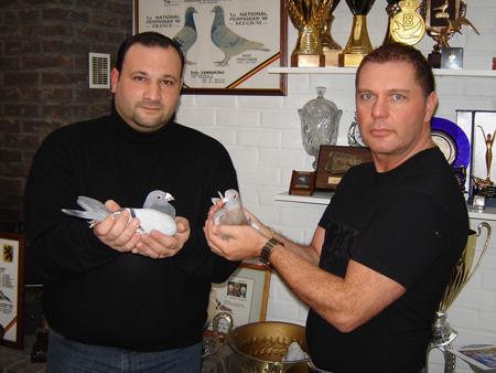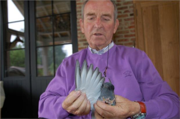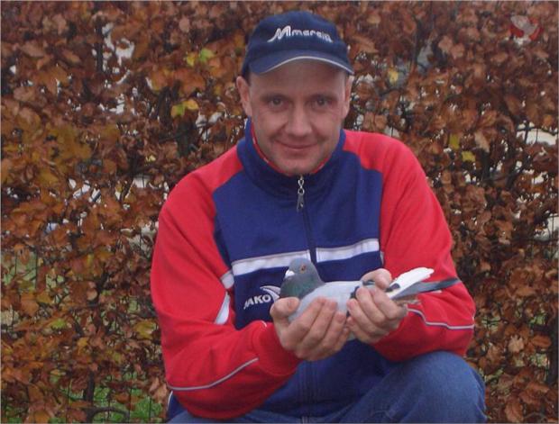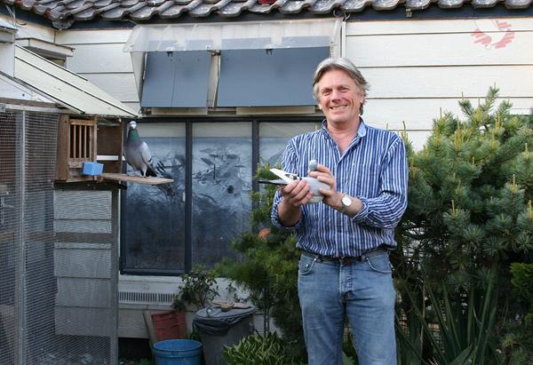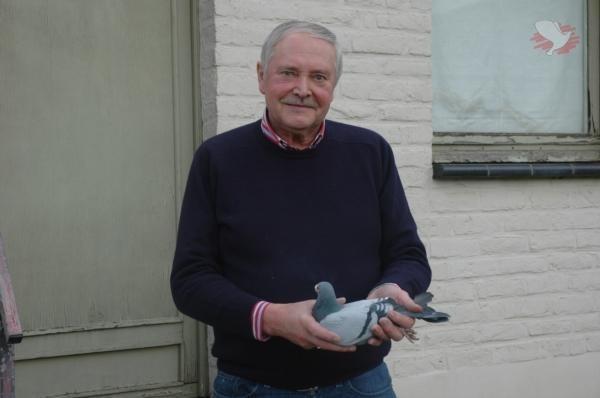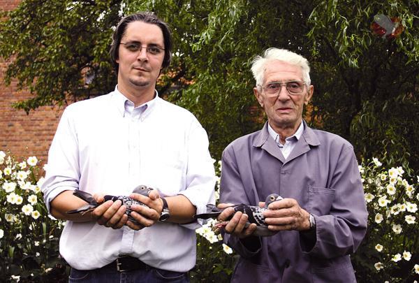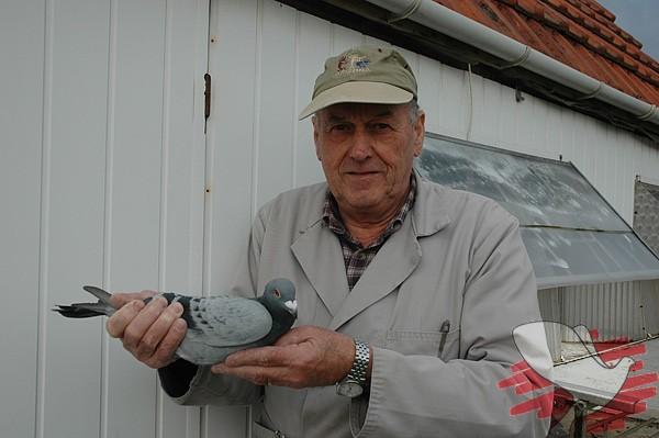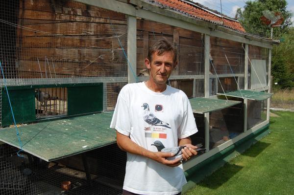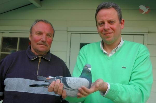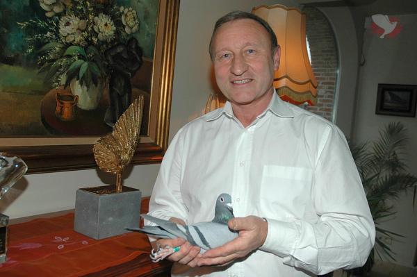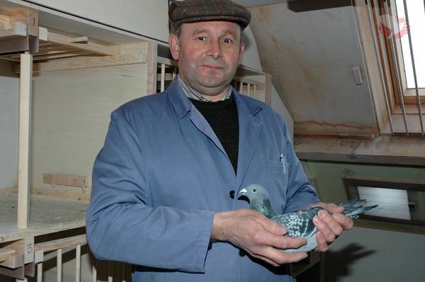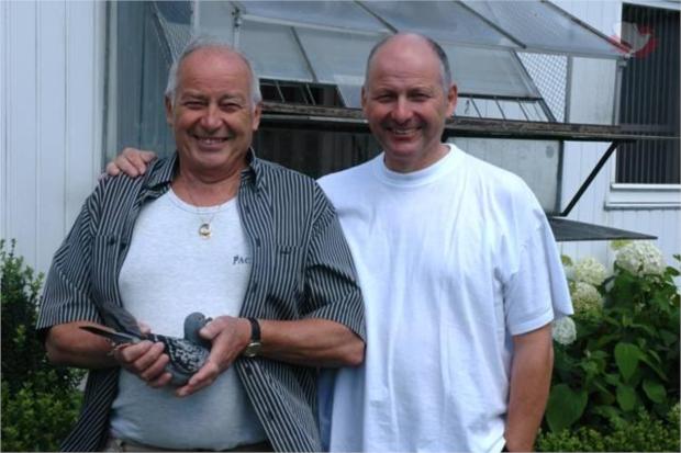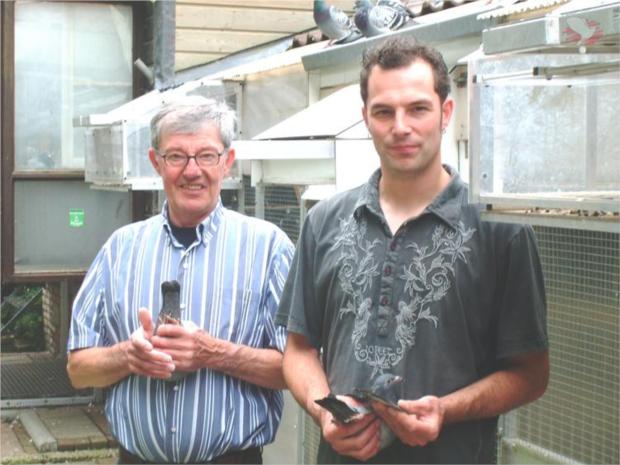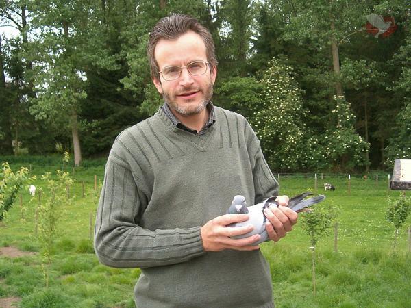 Jos Joosen - Na mão com o irmão do pombo que lhe adquiri e que ganhou 1º Internacional Perpignam
