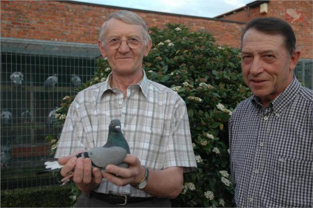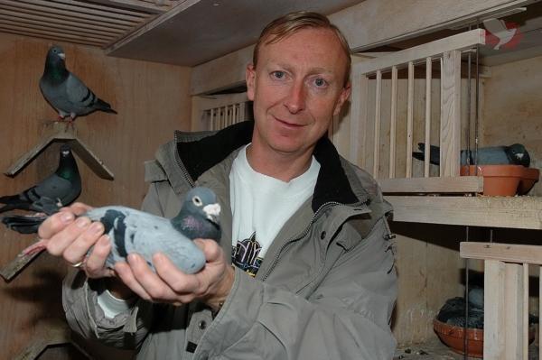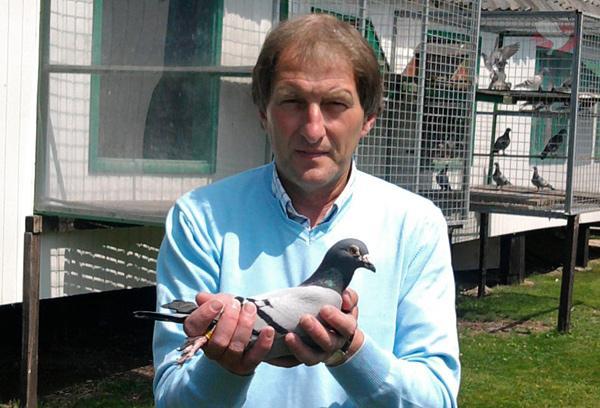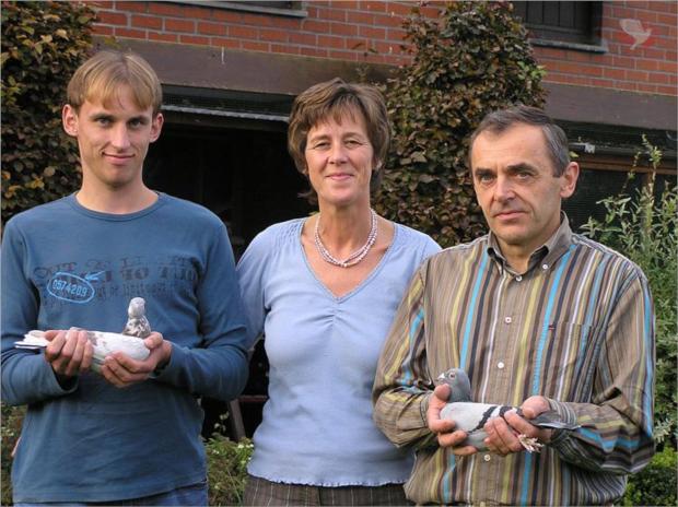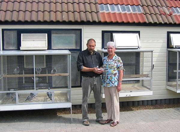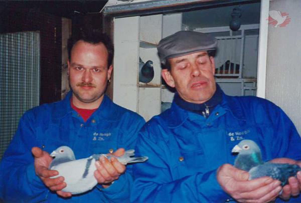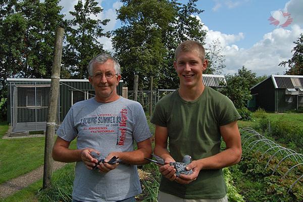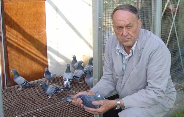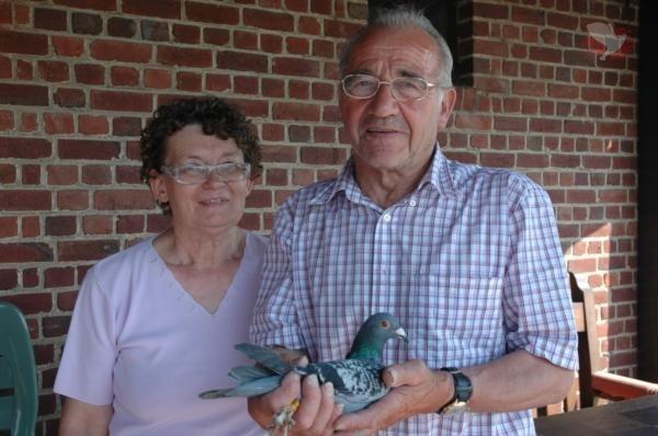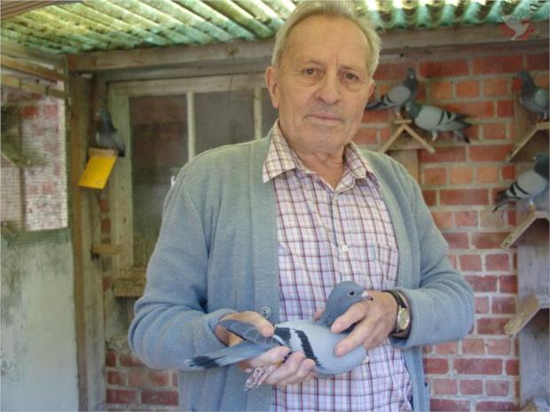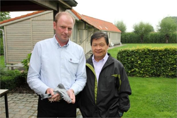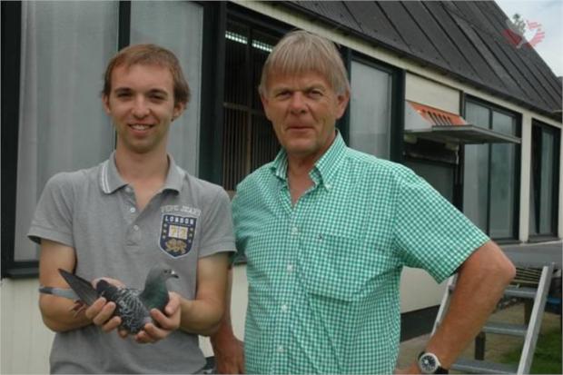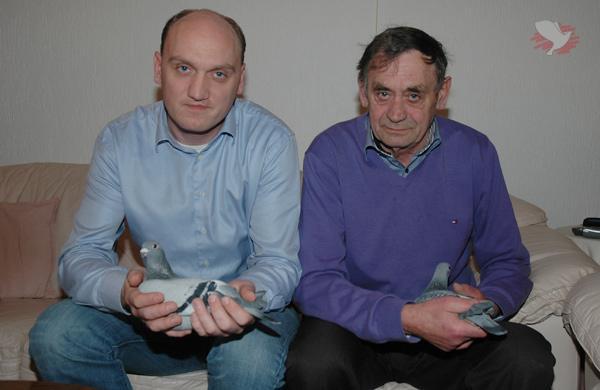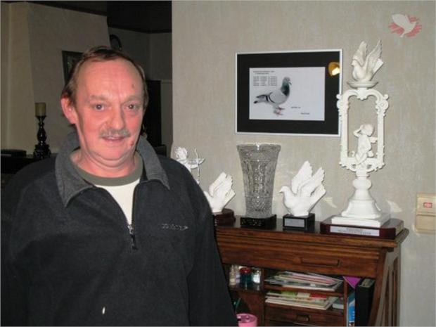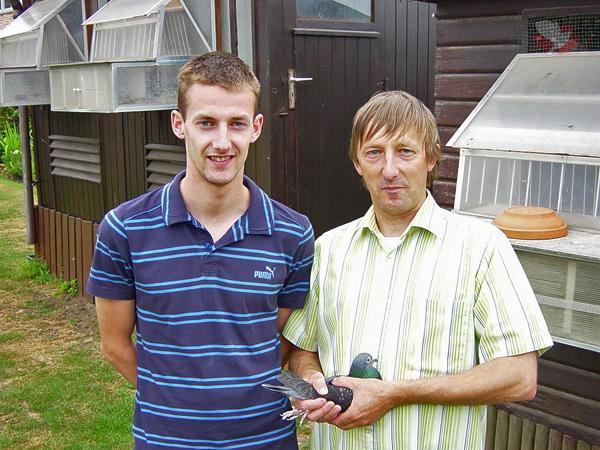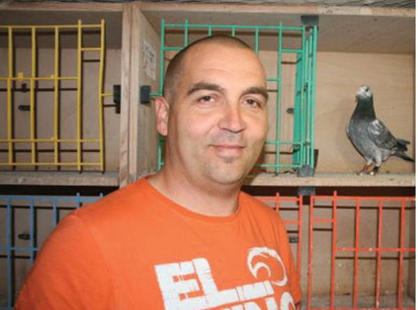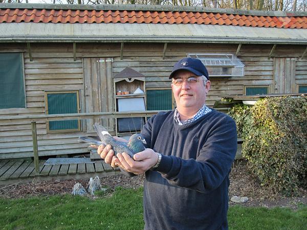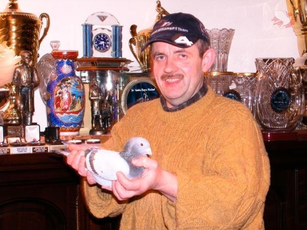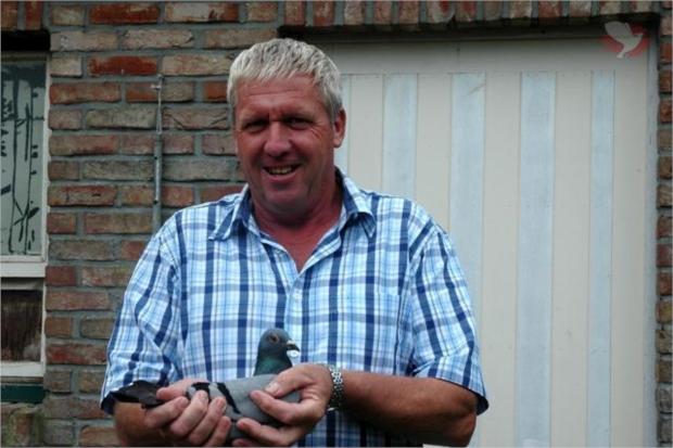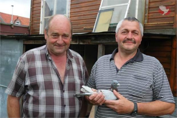 Jos Joosen - Na mão com o irmão do pombo que lhe adquiri e que ganhou 1º Internacional Perpignam