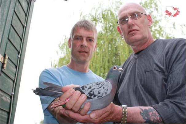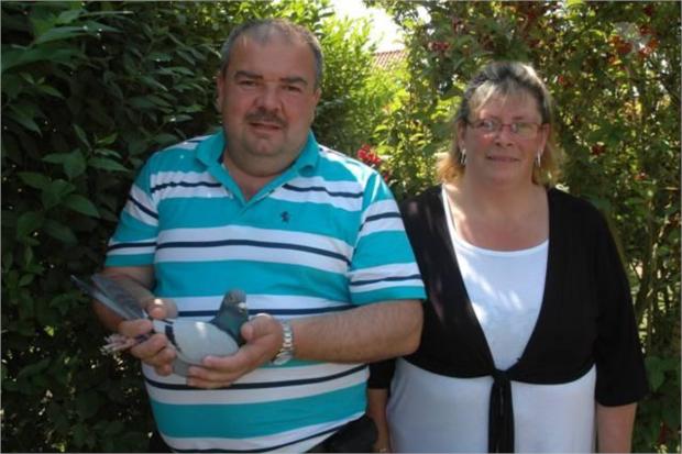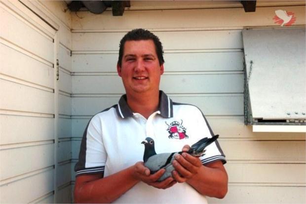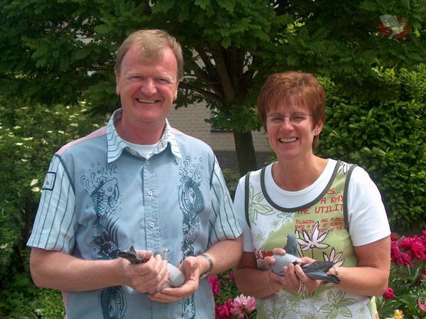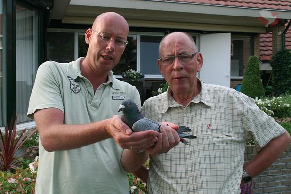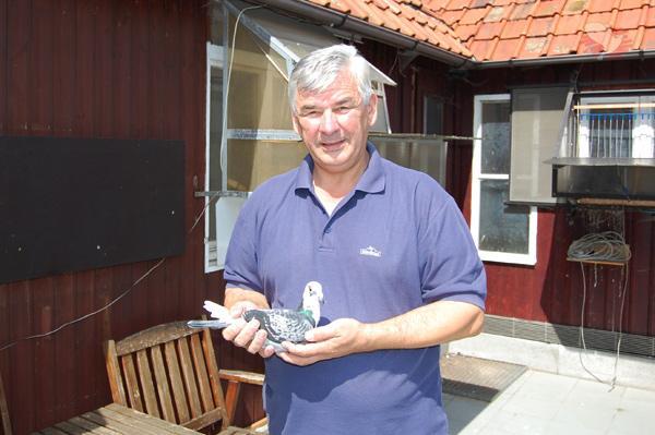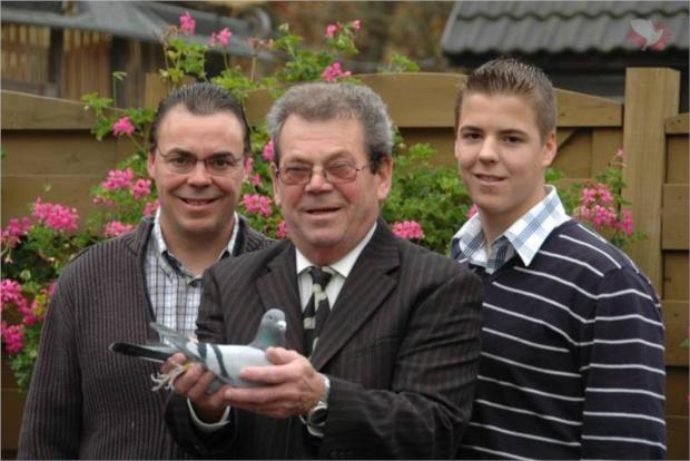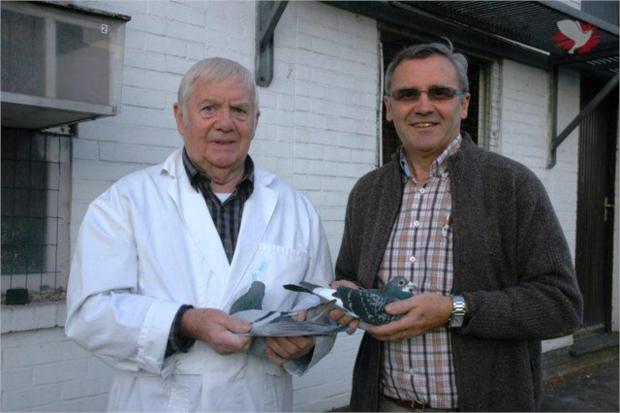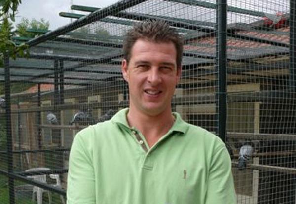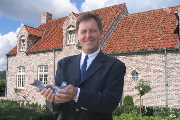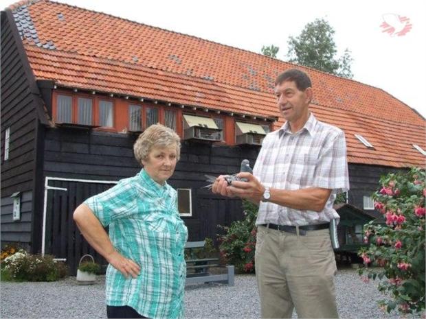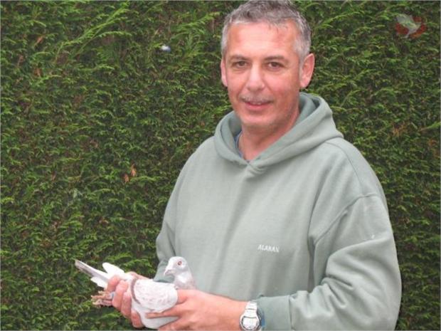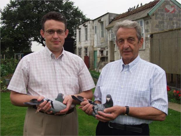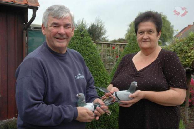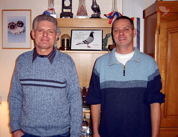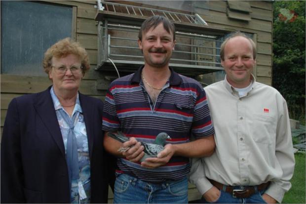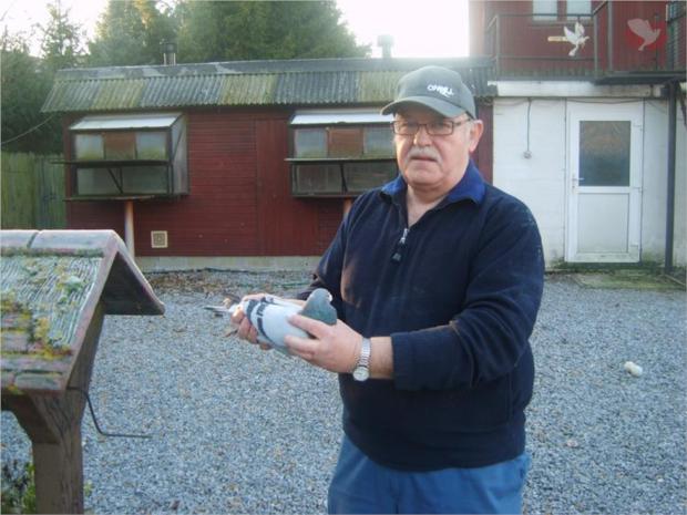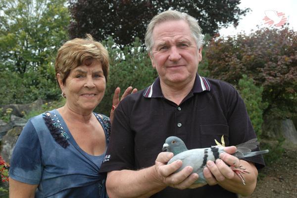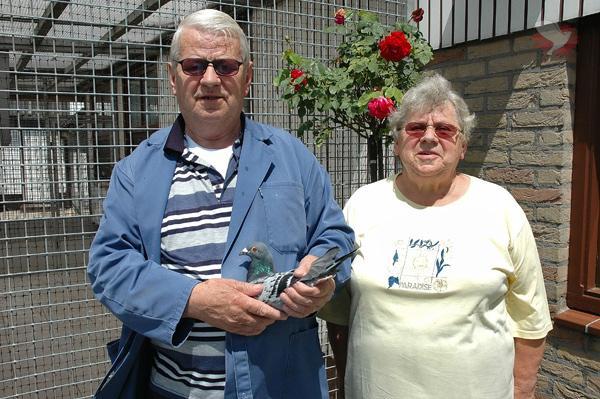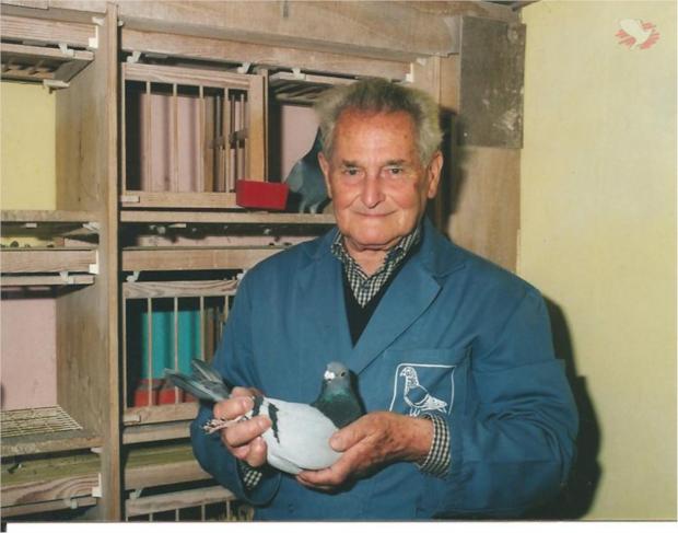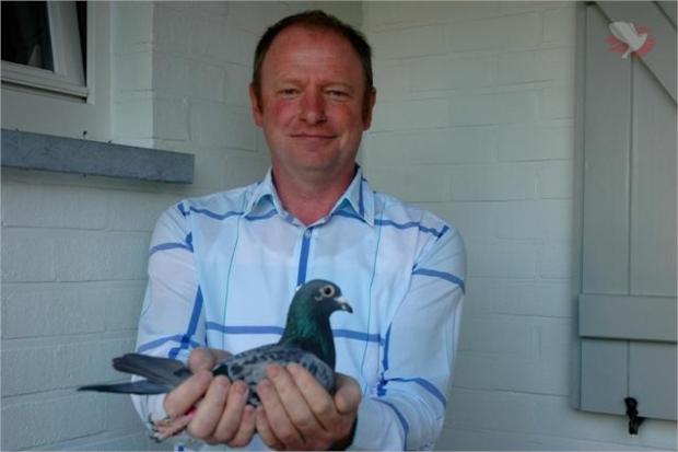 Jos Joosen - Na mão com o irmão do pombo que lhe adquiri e que ganhou 1º Internacional Perpignam